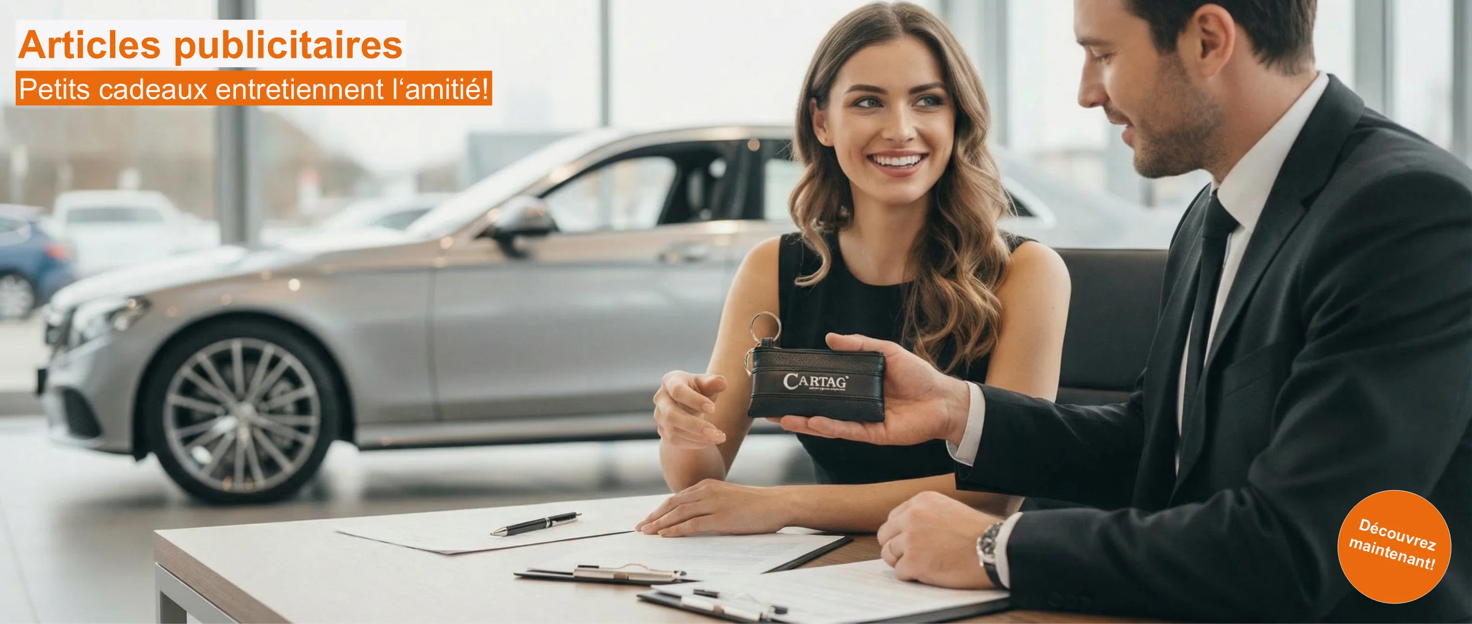 Les besoins des concessionnaires et des garages automobiles, en particulier, sont au centre de l'attention. Sous la marque CARTAG, des solutions aux problèmes et des produits sont proposés dans le cadre de la vente par correspondance qui facilite et soutient le processus de travail quotidien dans les concessions automobiles et les ateliers. Qu'il s'agisse d'une organisation efficace et sûre des clés, d'une promotion des ventes et d'une publicité réussie ou d'une planification claire et simple des ateliers, nous pouvons proposer des solutions adaptées à ces tâches grâce à notre vaste expérience et à une gamme de produits sélectionnés. Notre objectif est de soutenir nos clients dans leur vie quotidienne avec des idées de produits et de systèmes afin qu'ils puissent travailler aussi efficacement que possible et avec succès. C'est aussi devenu notre devise et notre slogan.